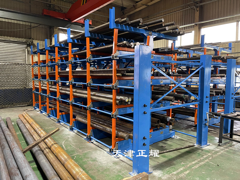 湖北荊門圓鋼存放架伸縮式懸臂結(jié)構(gòu)多層分類擺放整齊數(shù)量清晰,有6層結(jié)構(gòu),每層有2個(gè)貨位,每個(gè)貨位承重2-5噸,總存儲(chǔ)量60噸。懸臂伸出使用吊車存取圓鋼,存儲(chǔ)長度不限,貨架之間預(yù)留的巷道空間很小,不需要轉(zhuǎn)彎半徑空間,占地小存儲(chǔ)量高。