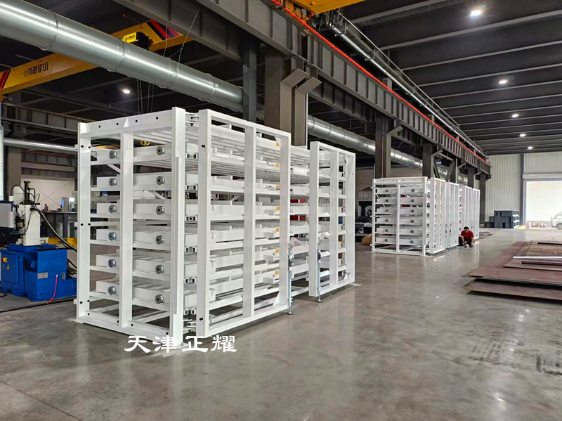 板材貨架共設(shè)計(jì)了8層抽屜,每層抽屜可存放一種板材,共計(jì)可存儲(chǔ)8種不同規(guī)格的板材。這種設(shè)計(jì)不僅滿足了板材車(chē)間多樣化的存儲(chǔ)需求,還使得每種板材都有其固定的存放位置,避免了混淆和錯(cuò)拿的情況。同時(shí),立體存儲(chǔ)的設(shè)計(jì)只占用了一種板材的空間,節(jié)省了地面面積,為車(chē)間內(nèi)的其他作業(yè)提供了更多的空間。